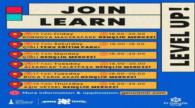 15–30 yaş aralığındaki gençlere açık olan programa, A2–B1 seviyesinde İngilizce bilgisine sahip katılımcılar başvurabiliyor. Ücretsiz olarak düzenlenen etkinliklerin kontenjanı sınırlı. Öte yandan, İngilizceye daha kapsamlı bir başlangıç yapmak isteyen gençler için 16 Şubat Pazartesi günü Alsancak Talâtpaşa Gençlik Merkezi’nde başlayacak, toplam 60 saatlik İngilizce eğitim programı da başvurulara açık. “English Speaking Club” etkinlikleri ile İngilizce eğitim programına ilişkin detaylı bilgi ve başvuru koşullarına gencizmir.com adresinden ulaşılabiliyor.