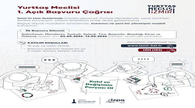 Bu sürecin bir parçası olmak ve değişimde rol almak isteyen İzmirliler https://www.izmir.bel.tr adresi üzerinden başvuru yapabilecek. Ayrıca detaylı bilgi için 153 numaralı Hemşehri İletişim Merkezi’ne (HİM) ulaşılabilecek.