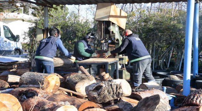 artıkları çöpe atılmadı, Park ve Bahçeler Müdürlüğünün atölyelerinde işlenerek